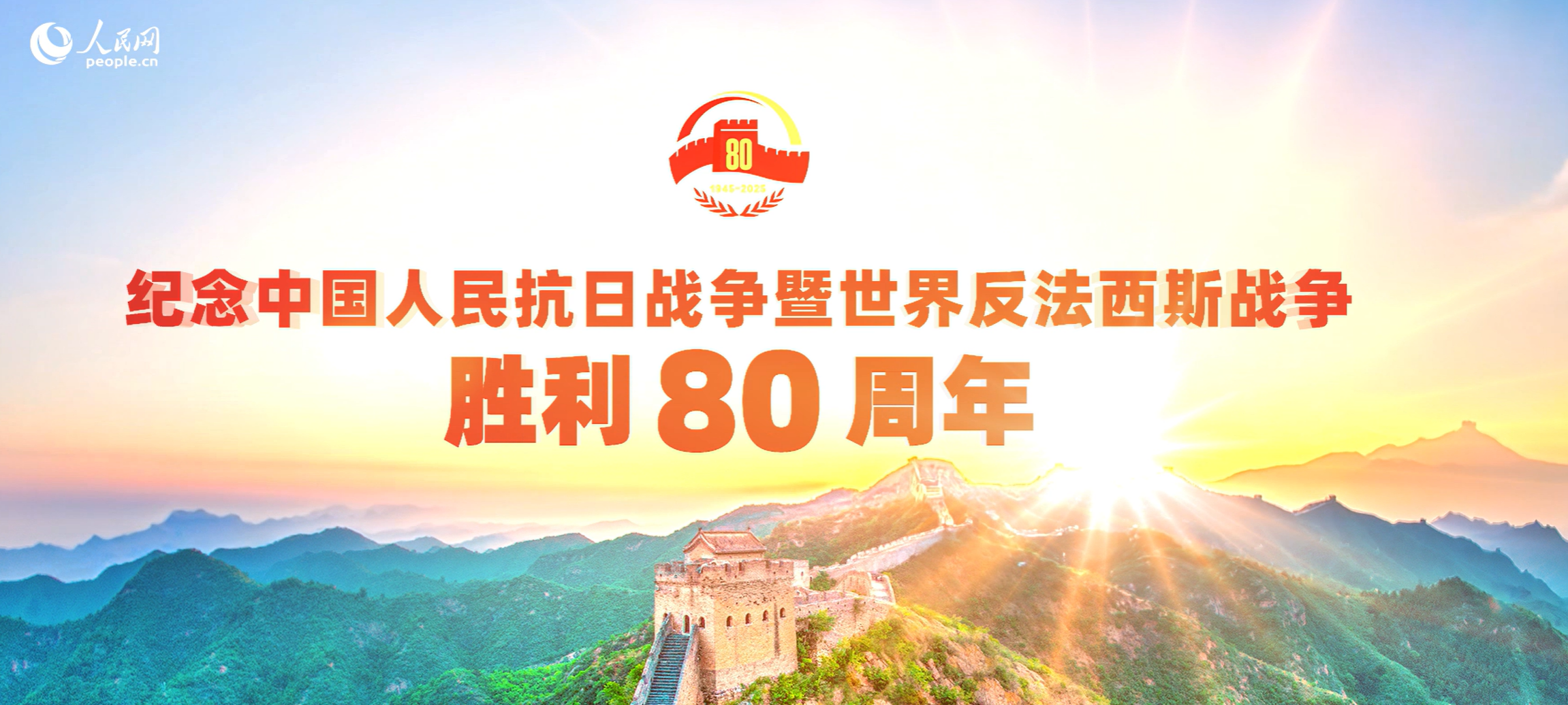 纪念中国人民抗日战争暨世界反法西斯战争胜利80周年大会将在北京天安门广场隆重举行。人民英雄纪念碑前,“钢铁长城”主题景观巍然矗立,14座烽燧托举起“1945”“2025”字样,14只“和平鸽”振翅飞翔。